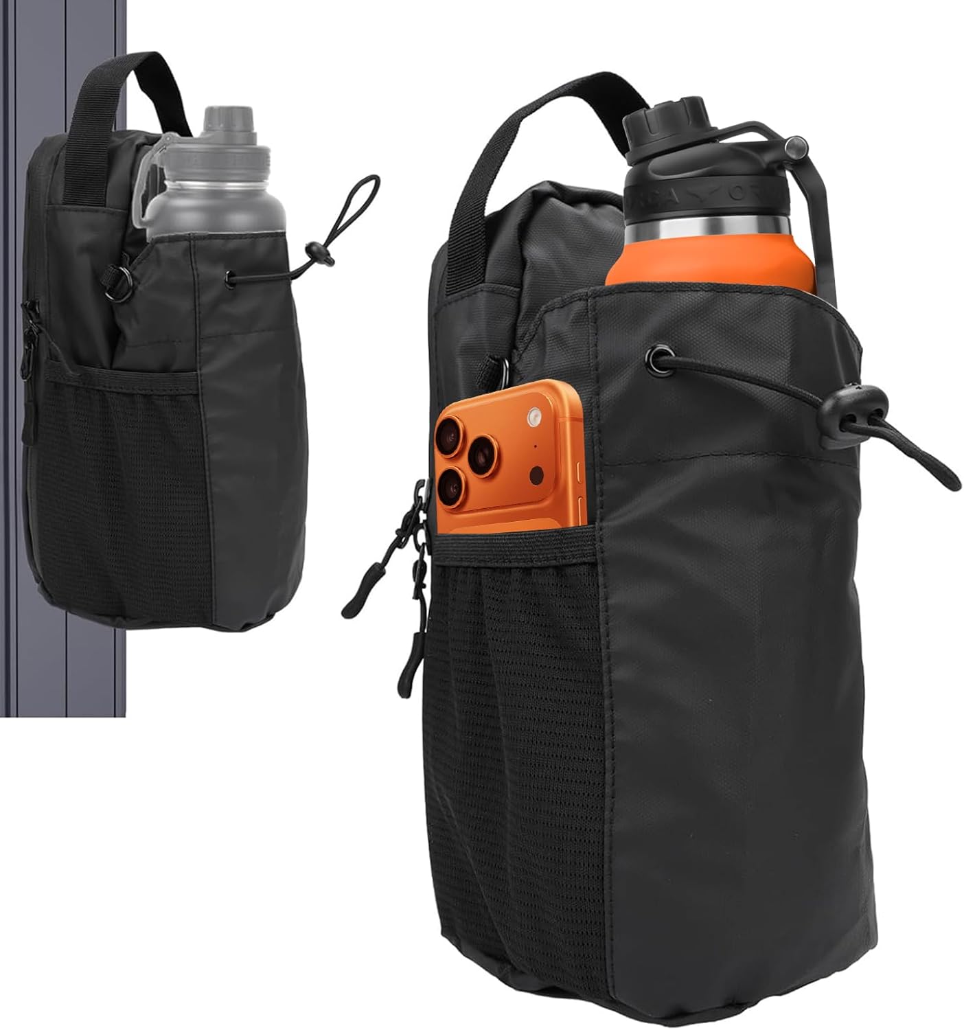 Bottle pouch keeps drinks upright and reachable.